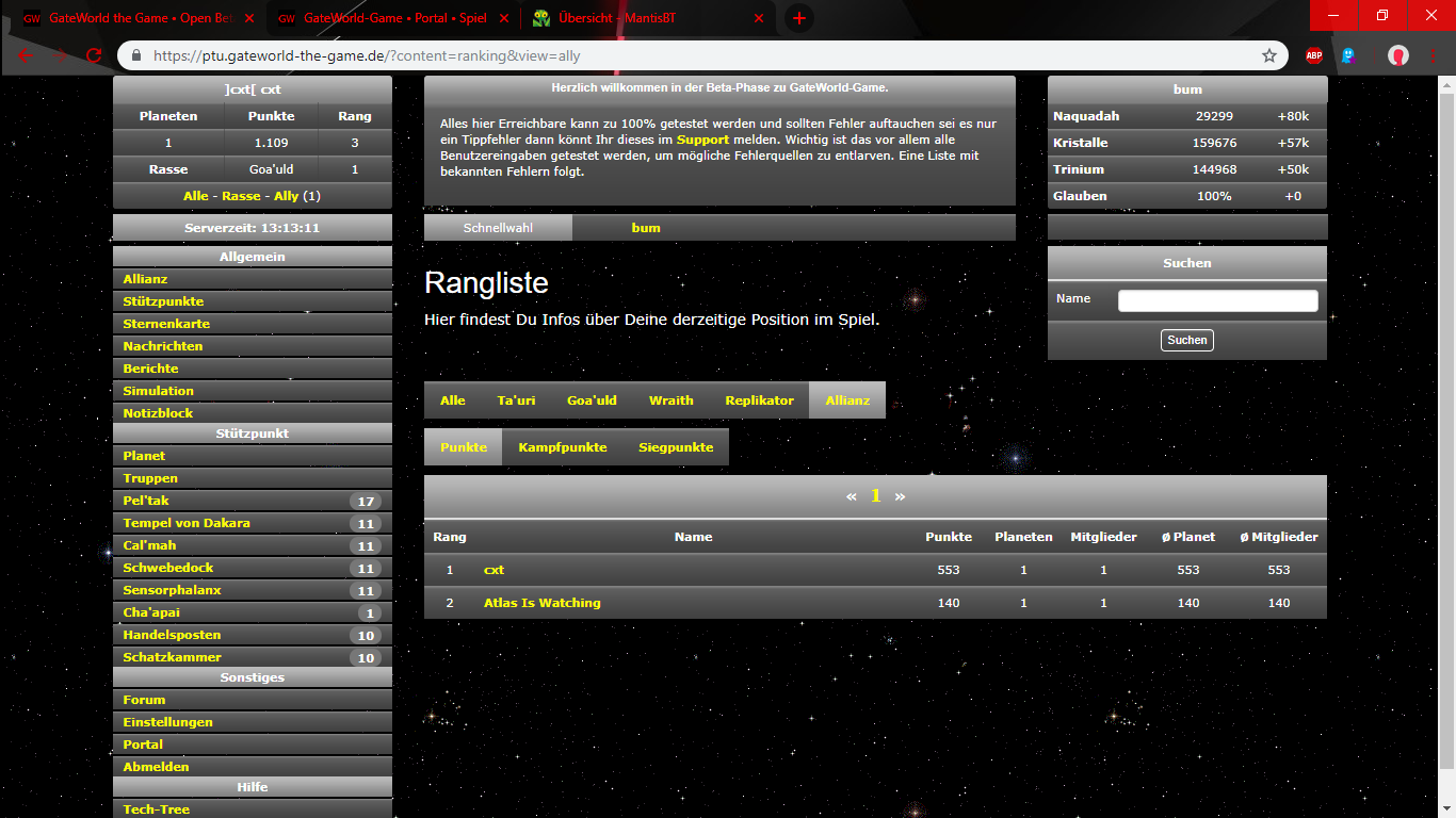 | Summary | 0001090: Aktualisierung der Punkte der Allianz nicht möglich | ||||
