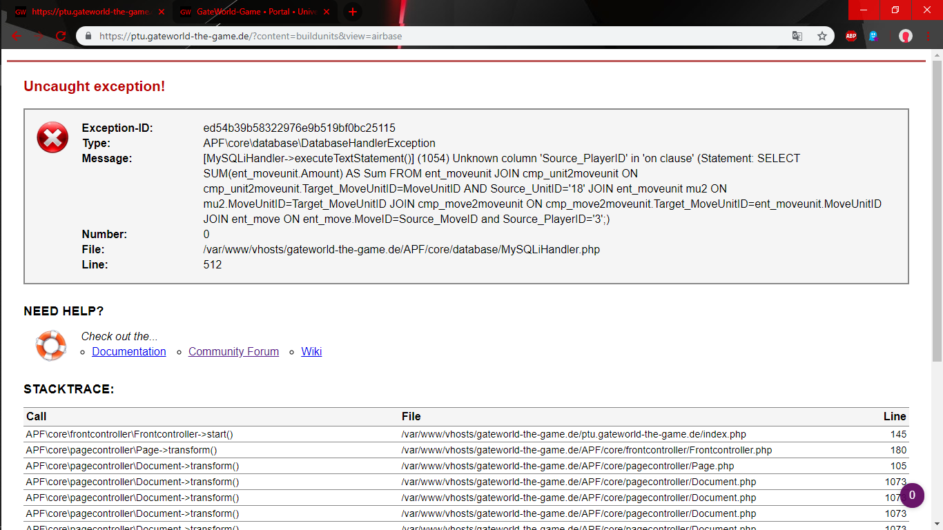PS: Wichtig bei den Error´s ist der Bereich Stacktrace bis zum schluss. Bei dem hier kann ich es mir schon denken woran es liegt... |