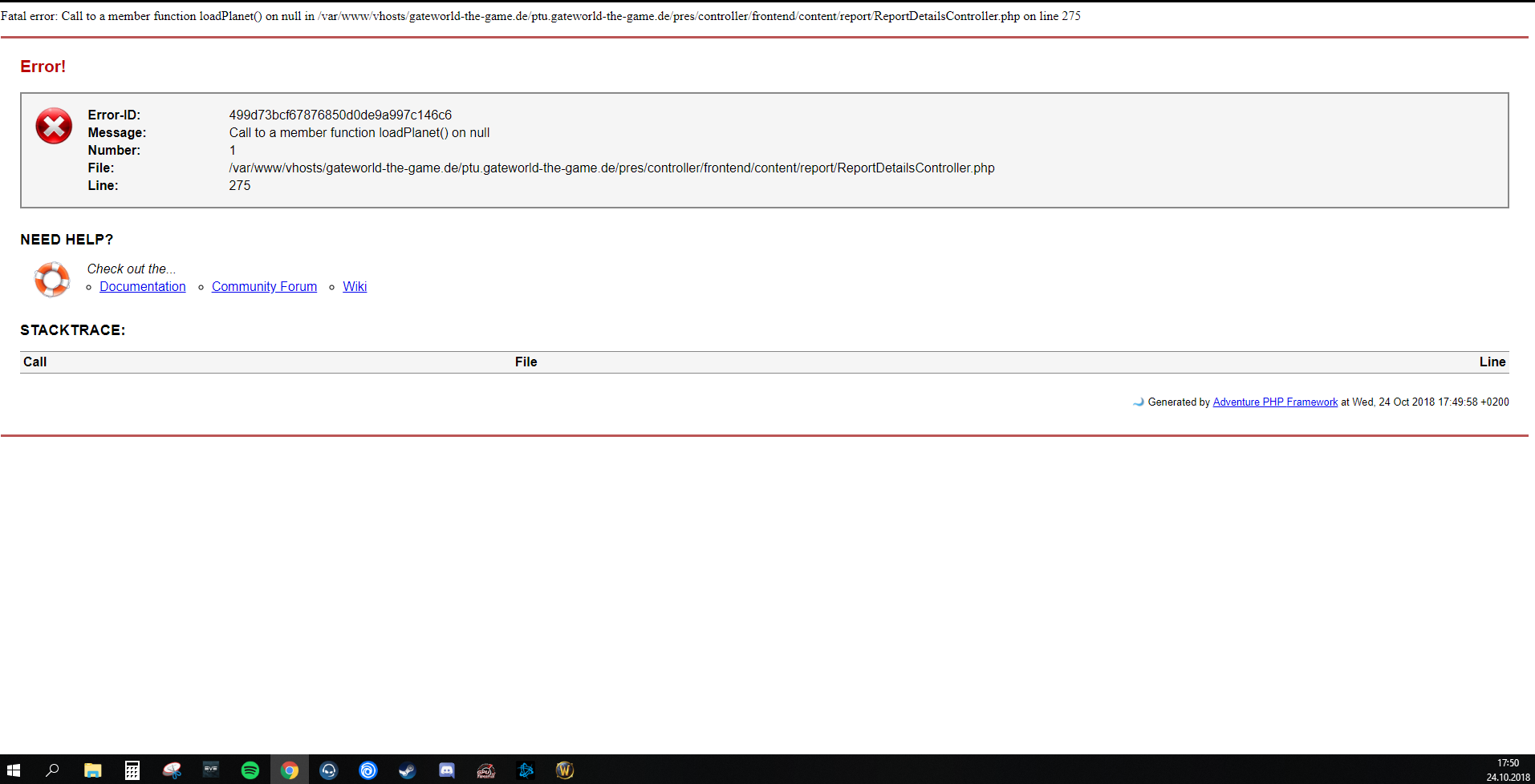 | Description | Anscheinend wenn es den Planeten nicht mehr gibt können keine Berichte abgerufen werden | ||||