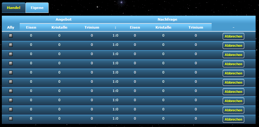 | Description | Wenn man negative Zahlen im Handelsposten verwendet werden Aufträge mit 0 Ressourcen erstellt. | ||||