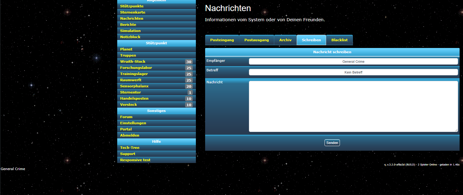| Description | Beim schreiben einer neuen Nachricht wird bei der Empfängersuche der jeweils ausgewählte Spielername am linken Seitenrand angezeigt. (siehe Bild) | ||||