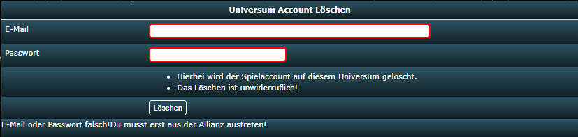 | Description | Bei "Universum Account Löschen" werden Meldungen nicht richtig angezeigt. | ||||