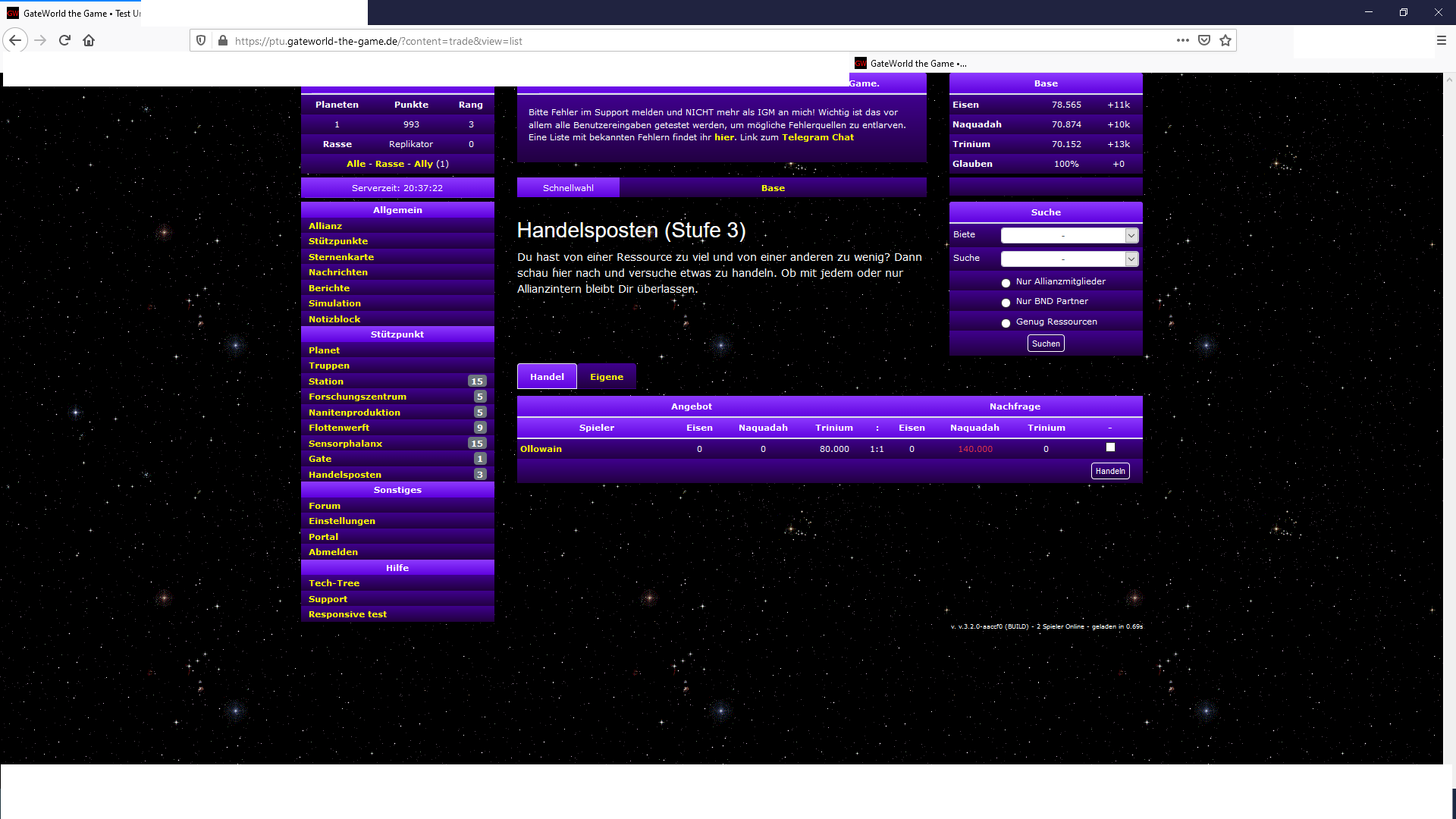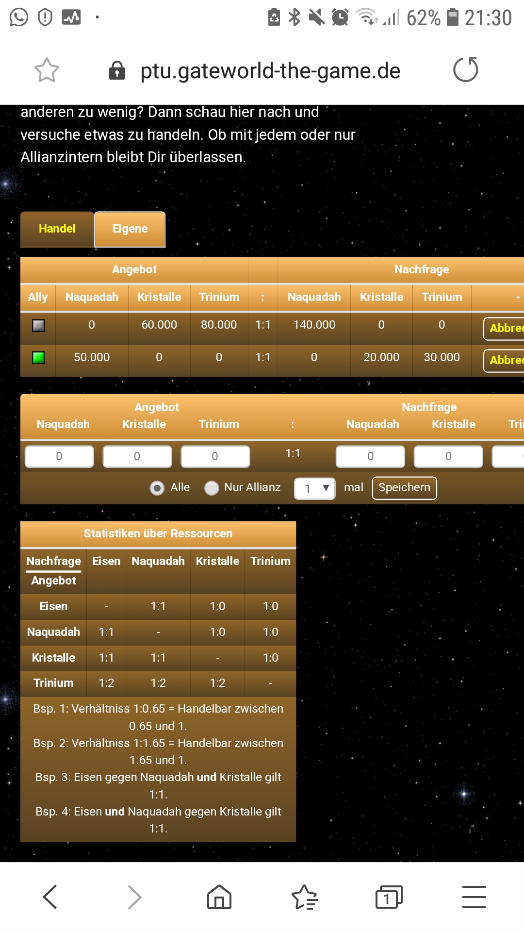 | Description | Moin ich stelle gerade fest das mir im Handelsposten handel angezeigt werden, die ich eigentlich garnicht annehmen kann (4. ressurche vermutlich mit im angebot) Grüße | ||||